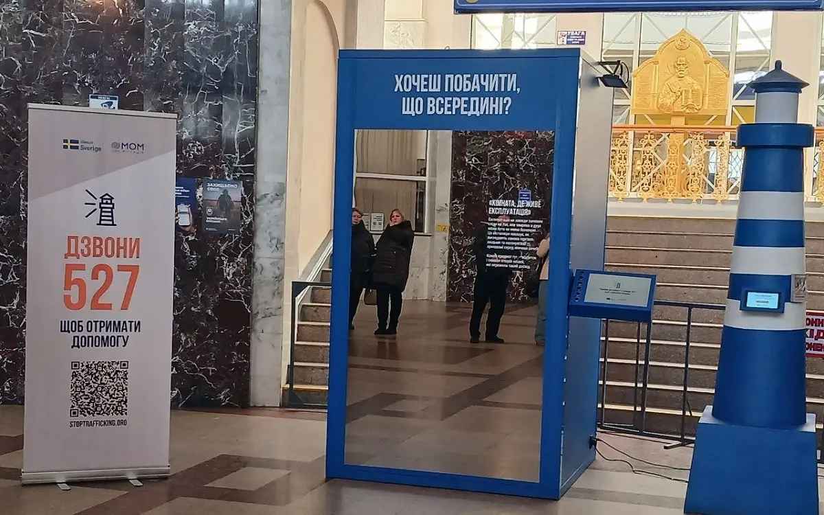 На вокзале в Одессе открыли зеркальную комнату о рисках торговли людьми