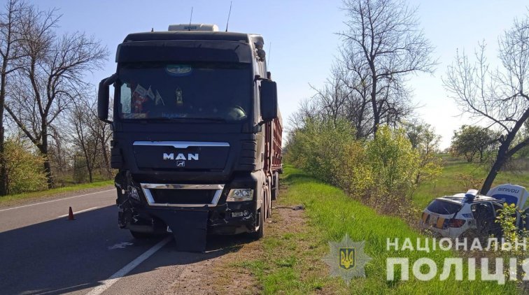 В результате дорожно-транспортного происшествия травмы получил 47-летний участковый офицер полиции. Его госпитализировали в больницу с закрытой черепно-мозговой травмой, повреждением плеча, грудной клетки, живота и ребер. Водитель грузовика, 28-летний житель Херсона, не пострадал.