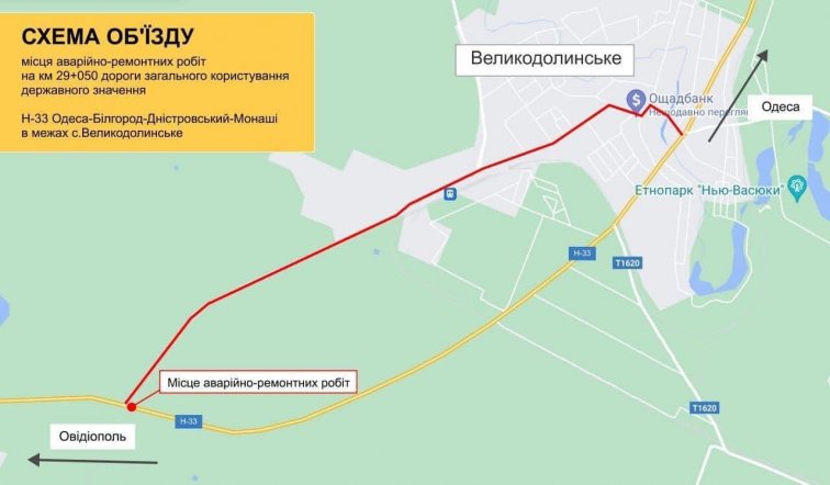 27 мая с 8:00 до 17:00 на дороге Н-33 Одесса - Белгород-Днестровский - Монаши, км 29 (возле пгт Великодолинское) будет закрыто движение для всех видов транспорта через железнодорожный переезд.