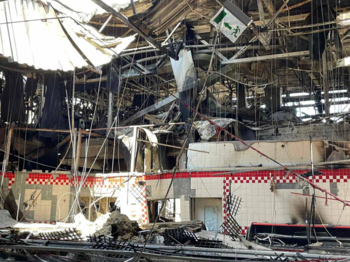 Администрация торговой сети «Ашан» поделилась фотографиями своего магазина, расположенного в ТРЦ «Ривьера» и сильно пострадавшего в результате обстрела 9 мая. По словам директора «Ашан Фонтанка» Юлии Аленичевой, сотрудники смогли попасть внутрь практически уничтоженного магазина только спустя три недели после злополучной ночи.