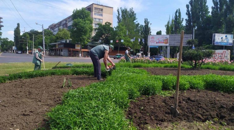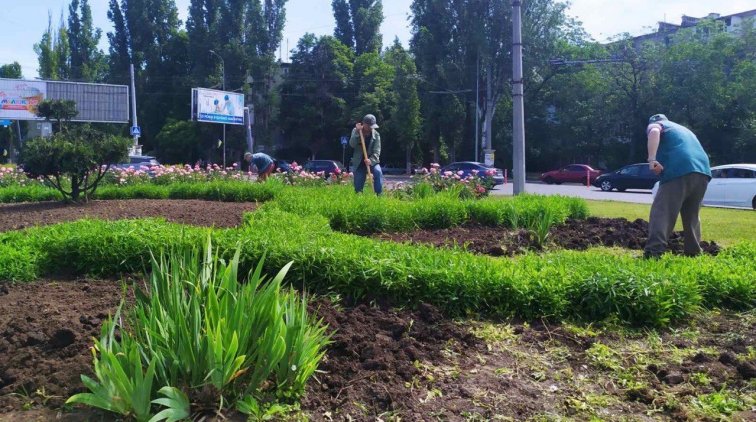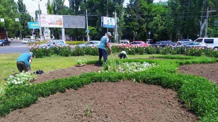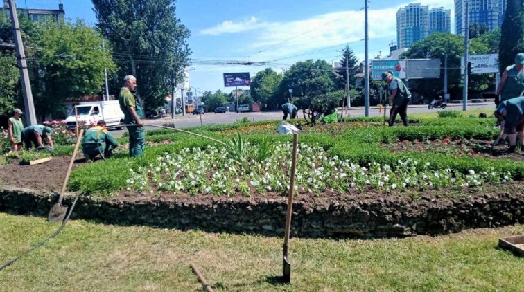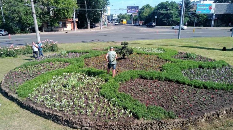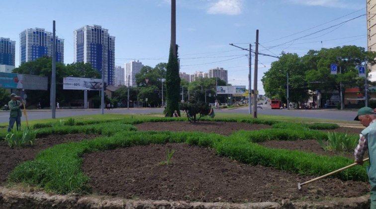 Одесские ландшафтные дизайнеры высаживают в городе летники. Петуниями украсили клумбу на площади Толбухина.