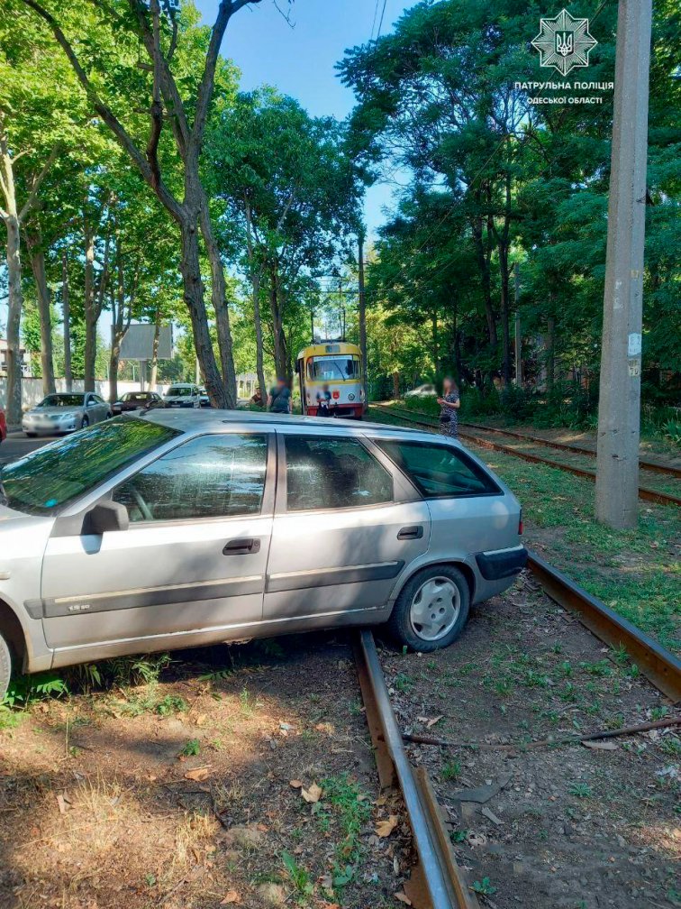 Утром, 6 июля, на линию «102» поступило сообщение об автомобиле на трамвайных рельсах в районе 4-й станции Большого Фонтана. Об этом сообщили в пресс-службе патрульной полиции.