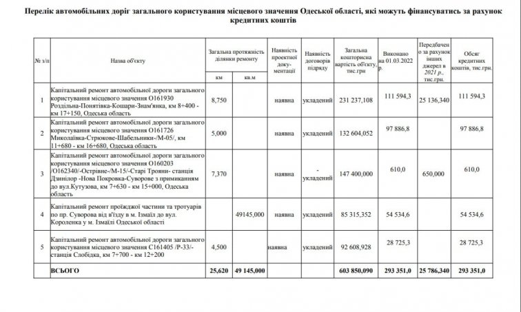 Весной 2021 года облсовет принял решение взять в кредит у «Укргазбанка» 630 млн грн на капитальный ремонт дорог местного значения.