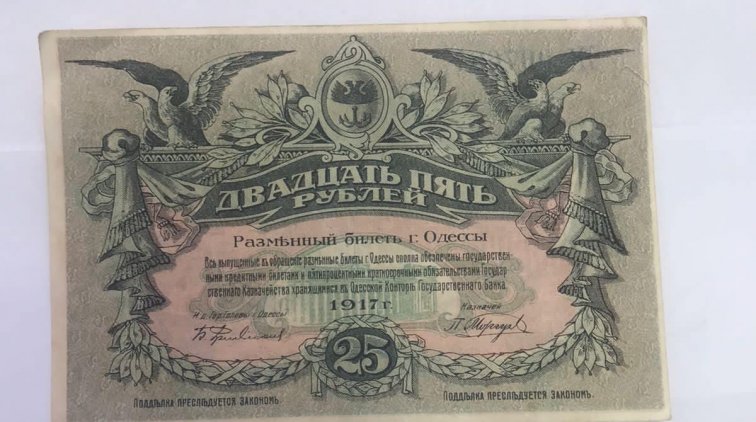 Среди одесских коллекционеров большой интерес имеет "разменный билет Одессы", напечатанный в 1917 году. Появление таких денег стало ответом городских властей на денежный коллапс, вызванный революцией и прекращением поступлений денежной массы в Одессу.