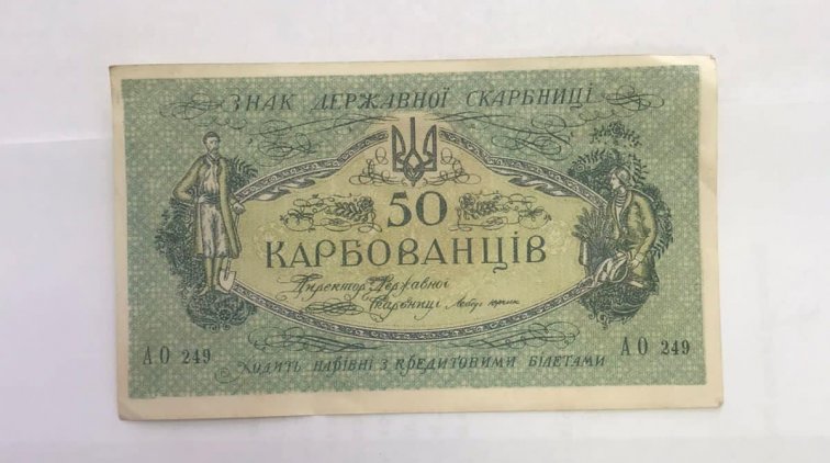«50 рублей», которые наш соотечественник пытался вывезти из Украины, являются одними из первых денег УНР. Они были введены в обращение в апреле 1918 года. В народе их называли «лопатками» из-за изображенного на них крестьянина с лопатой как символом труда.