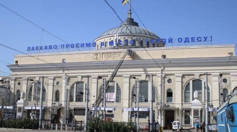 С фасада вокзала все же решили убрать советские символы или их часть. Символику на ЖД решили не демонтировать, а прикрыли плакатом.
