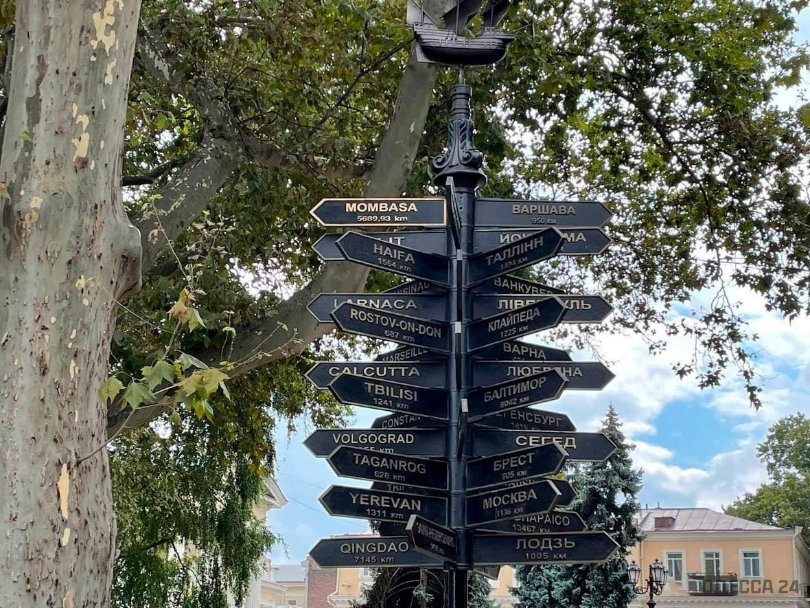 На памятном знаке на Думской площади в Одессе появились три новых таблички - "Майами", "Майами Бич" и "Венеция".