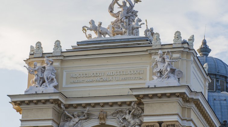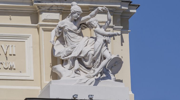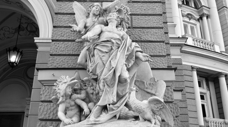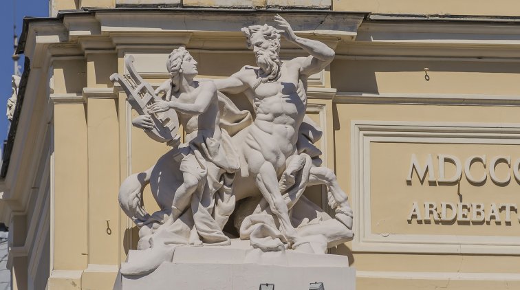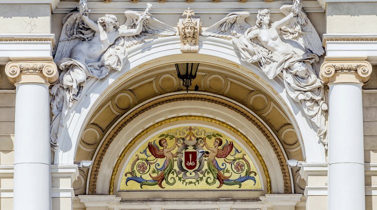 Фасад Одесского оперного театра наполнен множеством разнообразных декоративных элементов, символов и скульптур. Что они означают? Давайте начнем разбираться сверху.