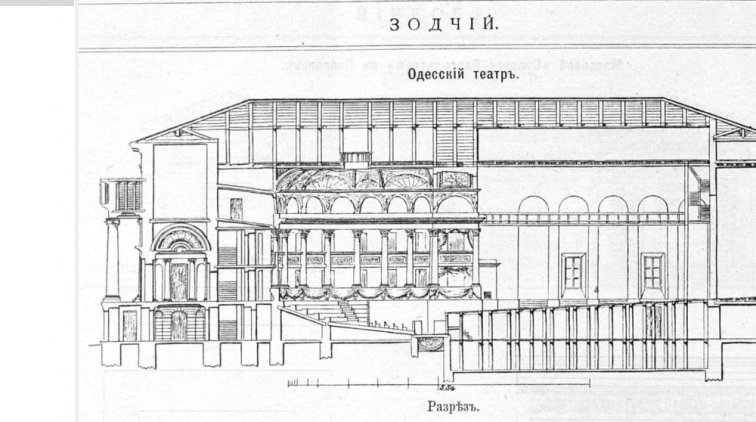 Боковой разрез Оперного театра, опубликованный в журнале «Зодчий» (1914)
