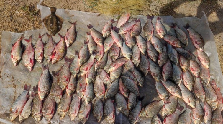 Правоохранители изъяли у правонарушителей почти 200 метров запрещенных сетей и незаконный улов – карасей, лещей и глоссы общим весом 106 кг.