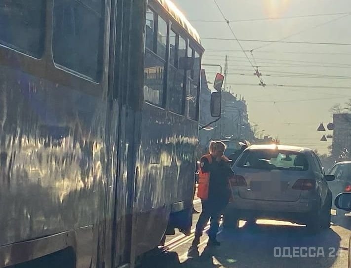 Днем 26 октября в Одессе на углу Тираспольской на Новосельского столкнулся автомобиль Tesla с трамваем.