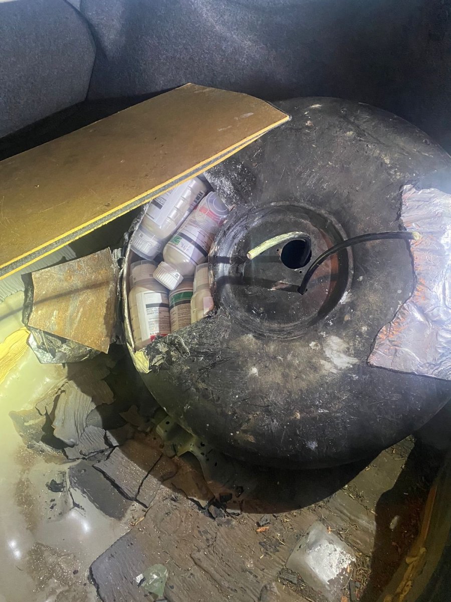 Женщина спрятала незадекларированные средства и контрабандные химические препараты в хорошо оборудованный тайник, который она построила в автомобильном баллоне ГБО.