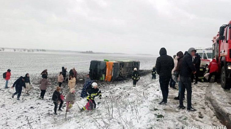 Пассажирский автобус "Неоплан" сообщением "Варшава-Одесса" съехал в кювет и опрокинулся. В салоне было два водителя, 25 пассажиров, из которых двое – дети.