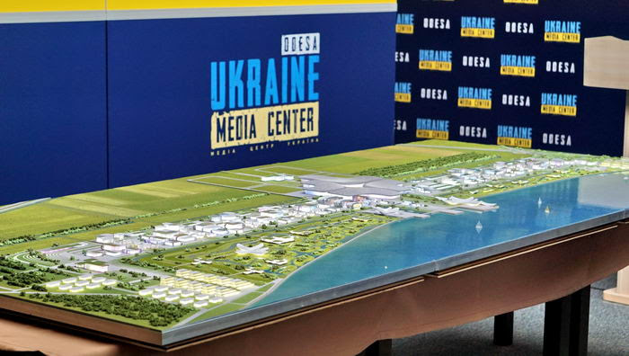 В Одессе прошла презентация макета выставочного комплекса ЭКСПО 2030, который построят в Одессе в случае победы города на конкурсе. Наконец-то стало понятно, где именно он будет расположен. Весь комплекс планируется построить на дамбе Хаджибейского лимана и вглубь полей орошения. Перед этим дамбу капитально реконструируют, а Объездную дорогу направят в глубину полей орошения подальше от дамбы и выставки.