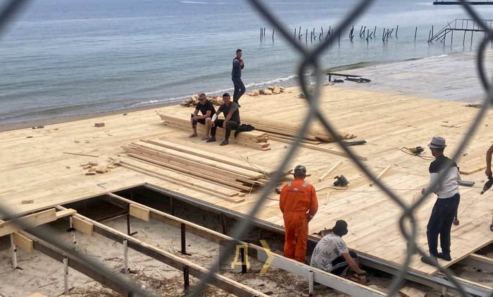 На 12-й станции Большого Фонтана, несмотря на минную опасность, арендаторы готовят значительную часть пляжа под платные услуги. Для этого песок накрывают деревянным настилом. Платным станет пляж под названием "Ривьера".