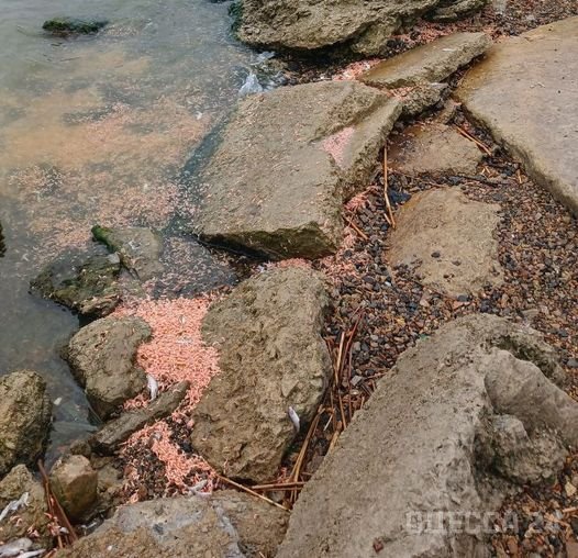 24 июня на участке протяженностью около 500 метров вдоль прибрежной полосы Хаджибейского лимана в районе дамбы объездной дороги обнаружили замор рыбы и креветки.