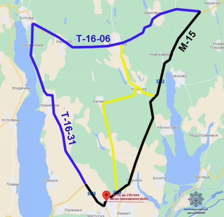 Движение грузового автотранспорта, следующего в Рени (порт Рени, МАПП «Рени — Джурджулешты»), МАПП «Орловка — Исакча», а также в порт «Измаил» будет осуществляться согласно схеме организации дорожного движения через села Бановка, Васильевка, Каракурт и город Болград. Так же будет двигаться транспорт и в обратном направлении;