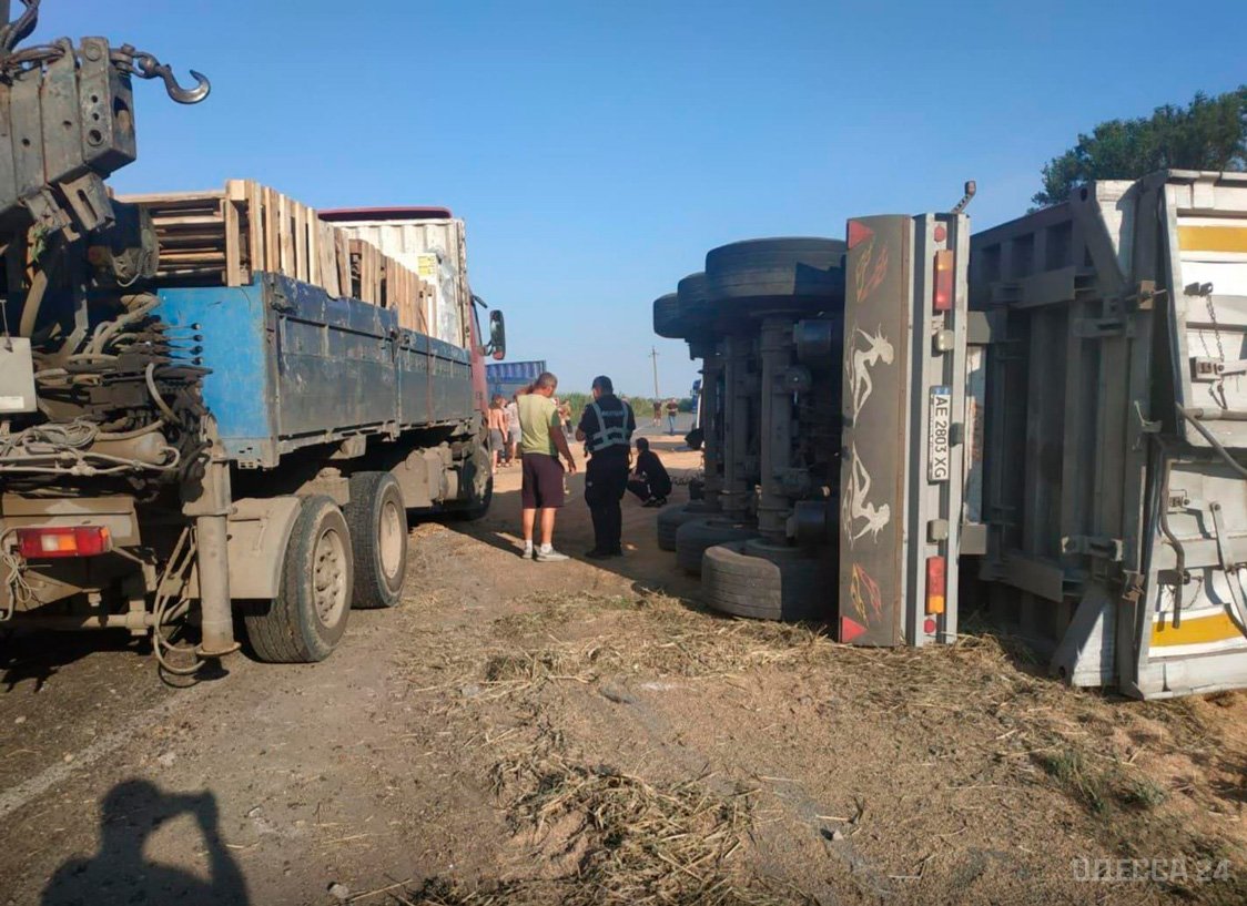 Вчера вечером на трассе Одесса-Рени на подъезде к Рени произошла авария с участием большегрузного транспорта, опрокинулась фура с зерном.