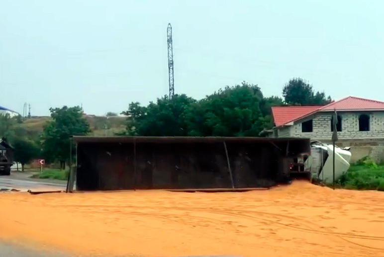 Груженая зерном фура перевернулась на трассе Киев-Одесса на въезде в Татарбунары.