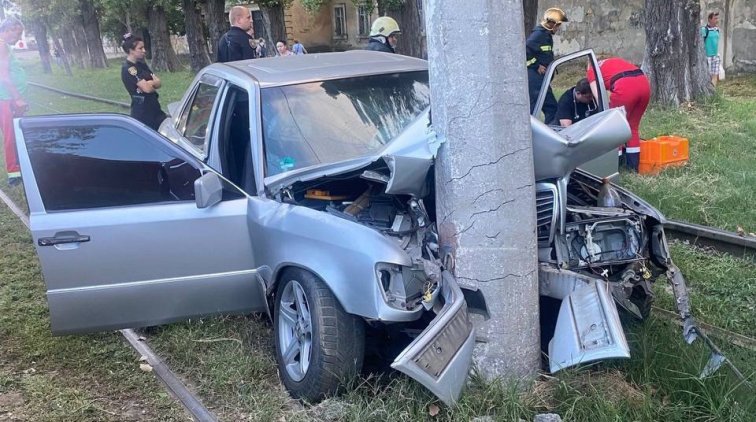 По предварительной информации, водитель Мерседеса не справился с управлением и врезался в столб.