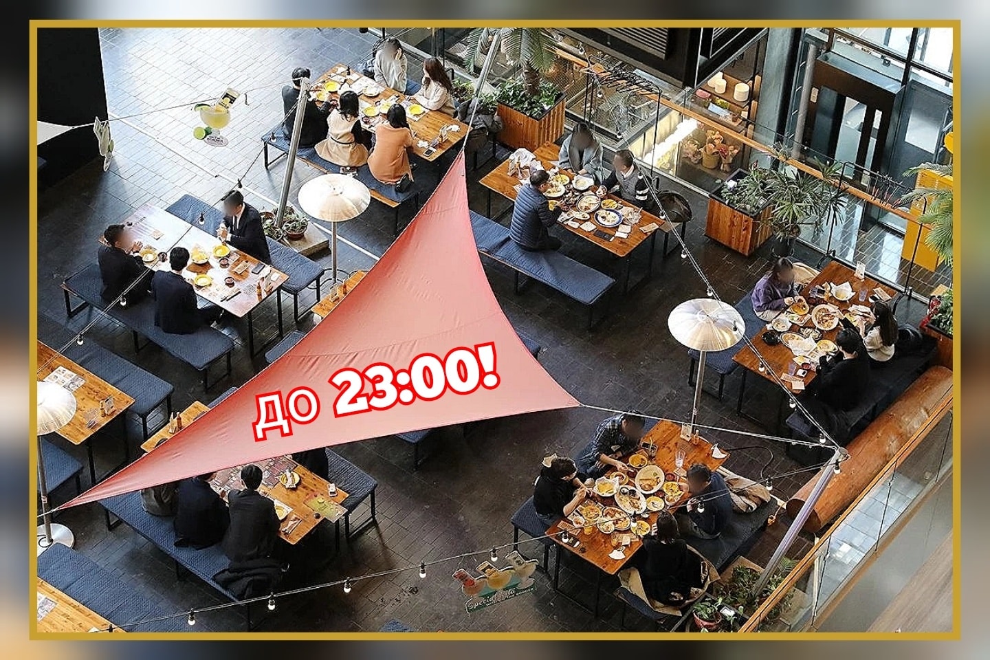 Работа кафе и ресторанов будет продлена до 23:00. Кроме ночных клубов. Теперь заведения общепита могут, по желанию, работать до 23:00. Ограничения остаются для развлекательных мероприятий.