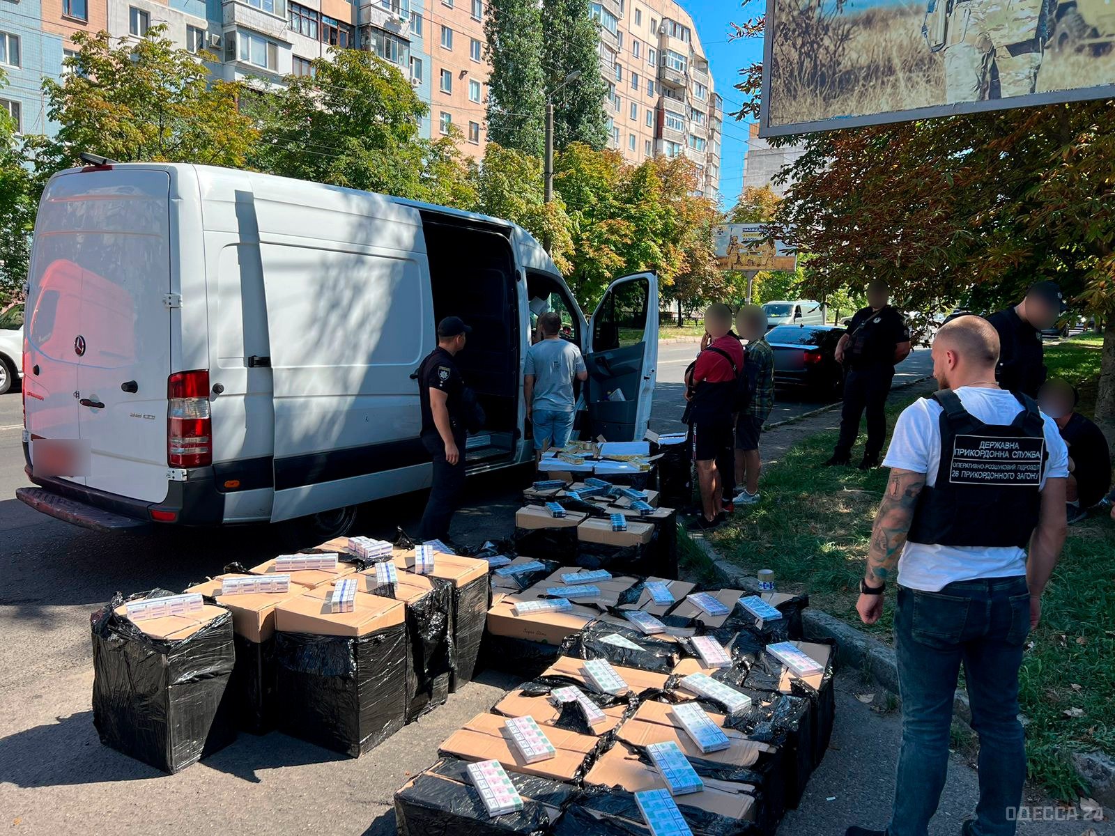 Бюро экономической безопасности задержали в Одессе автомобиль Mercedes Sprinter с контрабандной табачной продукцией.