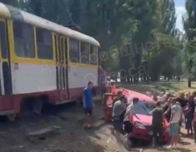 Сегодня, 23 август, в Одессе на участке между улицами Бочарова и Затонского произошло ДТП с участием трамвая, следовавшего по маршруту №7, и легкового автомобиля.