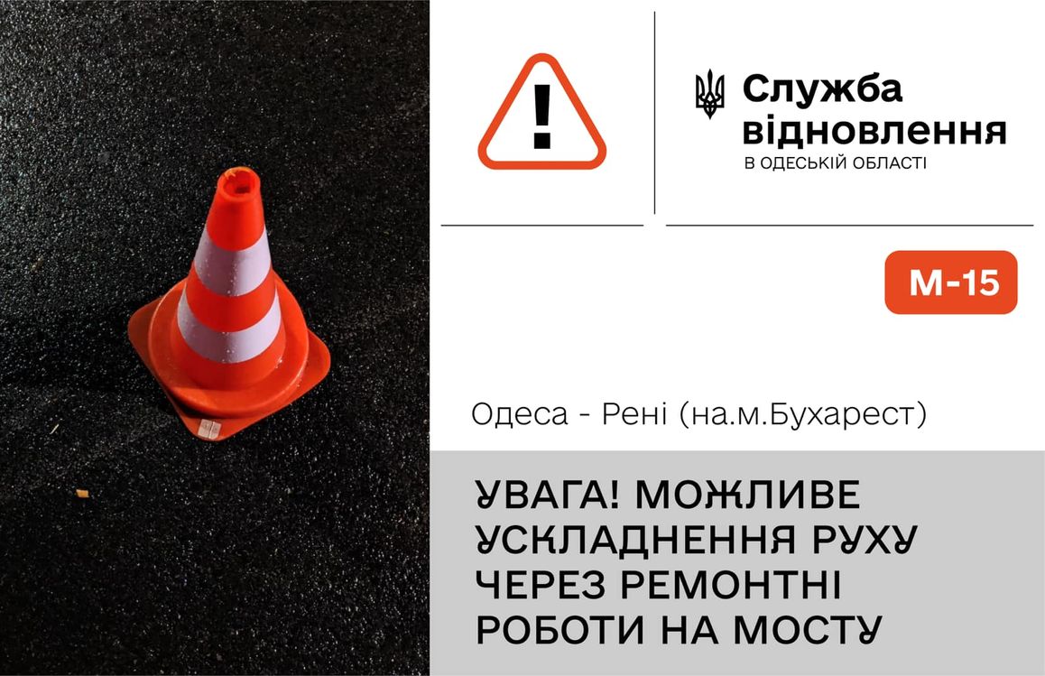 С 06:00 часов утра 18.09.2023, на мосту, который находится на 97 км (возле с.Николаевка-Новороссийская) автомобильной дороги М-15 Одесса - Рени (на г.Бухарест), будут выполняться аварийно-ремонтные работы.