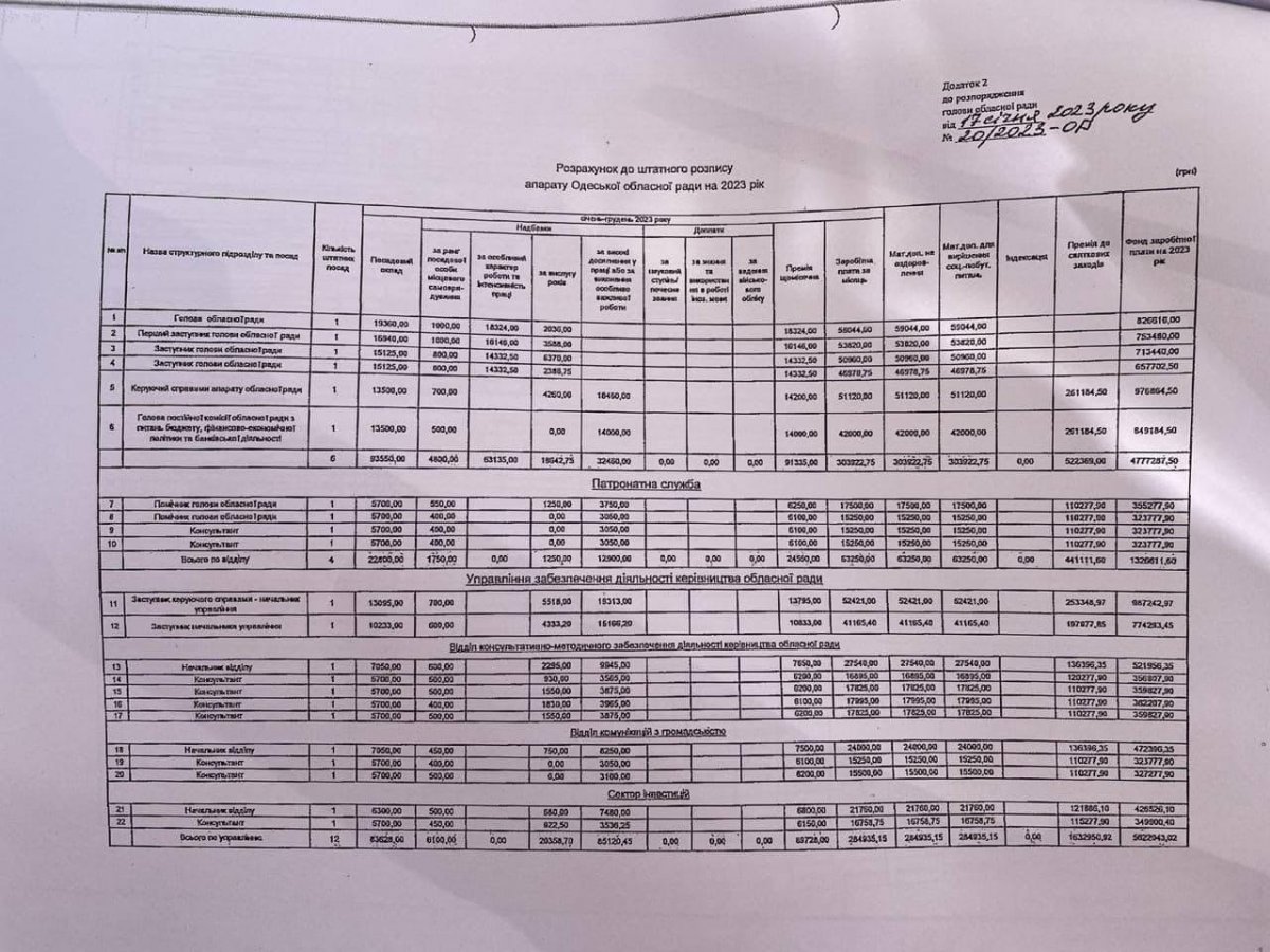«40 миллионов гривен Одесский облсовет потратит на зарплаты в 2023 году. Для чиновником предполагаются ежемесячные премии, доплаты за высокие достижения, материальная помощь на оздоровление и на решение социально-бытовых условий (их две) и также премия к праздникам. Например, на премии к праздникам потратят 11 миллионов гривен в этом году», — написал Шмушкович.