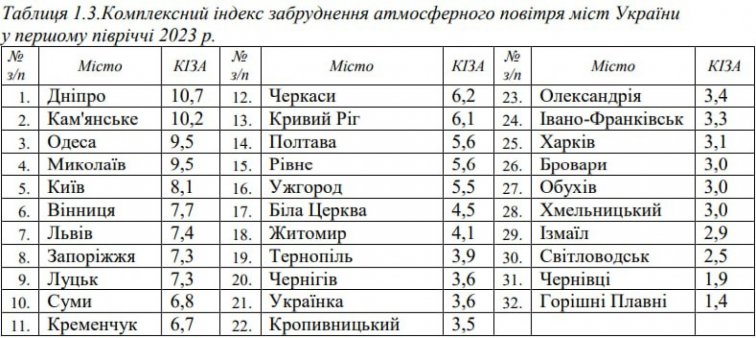 Специалисты отметили города с самым грязным воздухом. Среди лидеров: Днепр, Каменское, Одесса. Николаев и Киев заняли четвертое и пятое место соответственно. В этих городах уровень загрязнения воздуха по комплексному индексу загрязнения атмосферы характеризуется как «высокий».