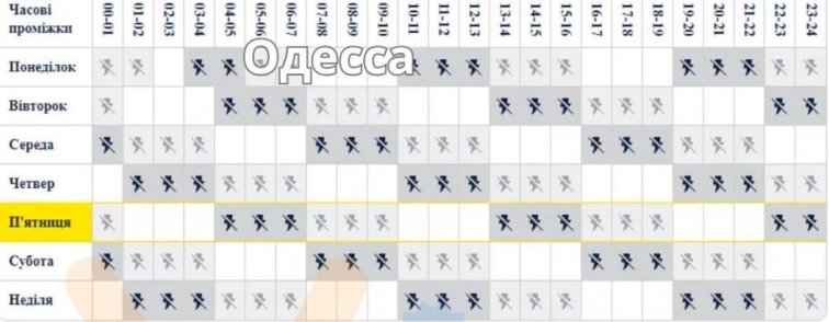 Планируется, что в Одессе график будет выглядеть следующим образом: три часа обесточивания, три часа с возможным отключением света, три часа с электроэнергией.