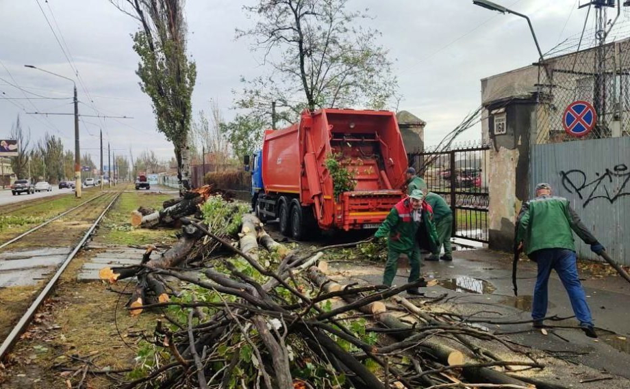 Также в течение суток, пока не утихали сильный ветер и дождь, для предотвращения подтоплений на улицах города дежурили работники КП «Городские дороги».