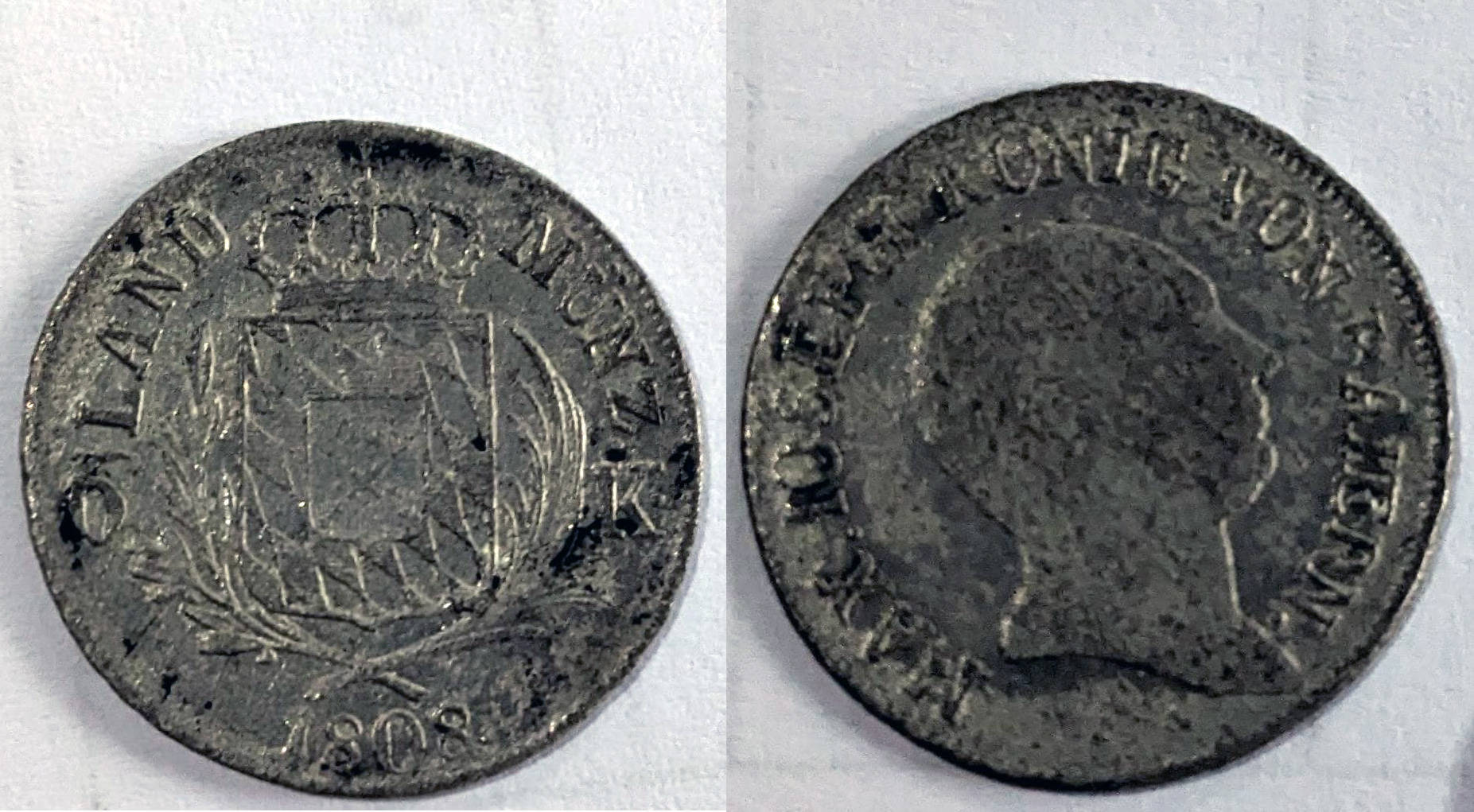 Это монета 1808 королевства Бавария стоимостью 6 крейцеров. Связанна монета, скорее всего, с первыми поселенцами Сараты. Известно, что одна часть колонистов прибыла именно из Баварии.