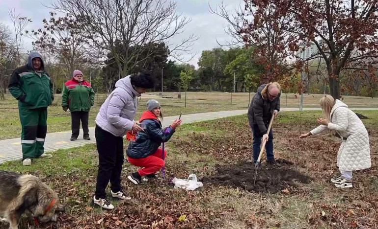 Сотрудники одесского роддома №7 высадили аллею из канадского дуба в парке Победы.