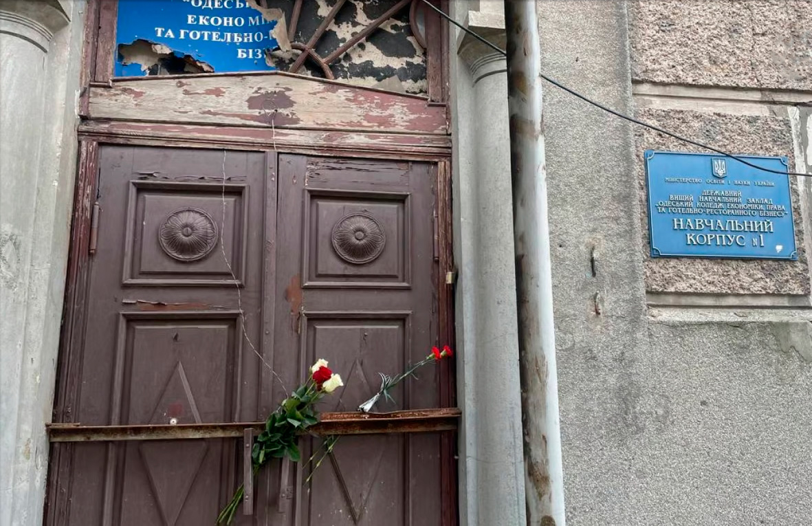 У главной двери учебного корпуса появились свежие цветы с траурными лентами. Это свидетельствует о том, что одесситы помнят трагедию в центре города, за которую до сих пор никто не нес ответственности.