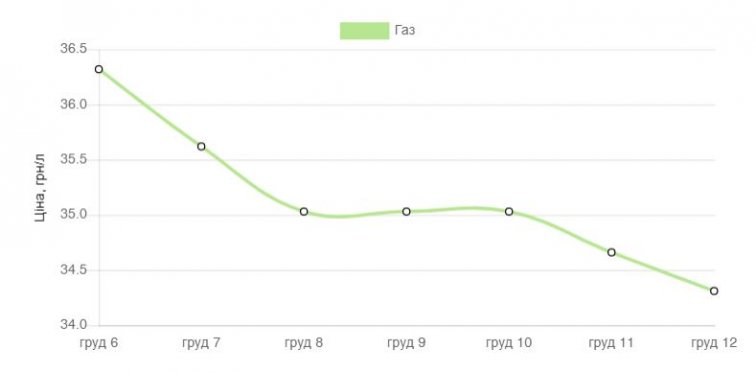 Цены на газ продолжают падать. Если сравнить ситуация на рынке горючего 5 декабря и сегодняшние показатели, то цена упала на 2,01 гривны за литр.