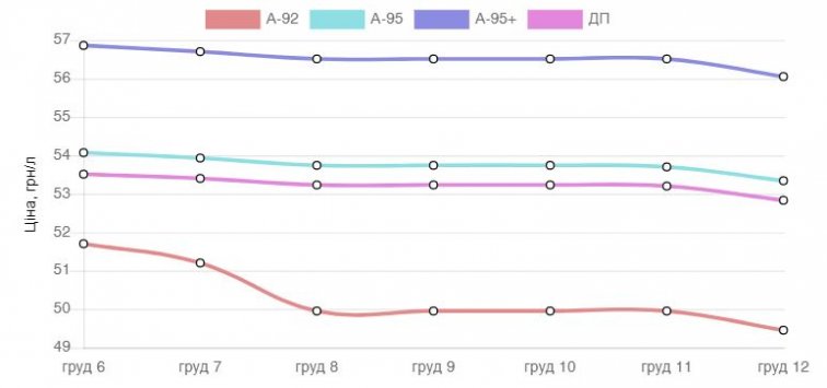 Стоимость А-95 по сравнению с 6 декабря снизилась на 81 копейку за литр. Незначительное падение стоимости и на А-95 и ГП за последние пять дней. Как свидетельствуют данные, цены на эти виды горючего снизились на 0,73 грн/л и 0,68 грн/л соответственно. Также падает цена и на А-92, с минувшего вторника стоимость снизилась на 2,25 грн/л.