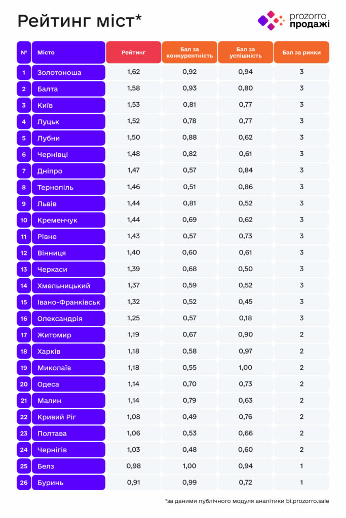 - Луцк и Лубны также вошли в первую пятерку по результативности управления имуществом через онлайн-аукционы.
