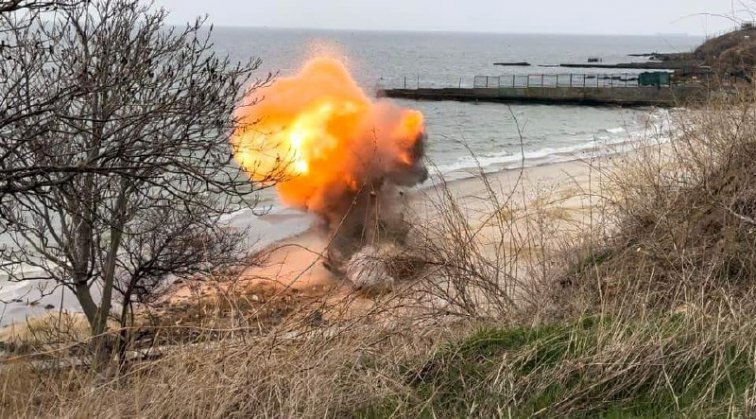 Пиротехники ГСЧС уничтожили мину на побережье Черного моря в Одессе.