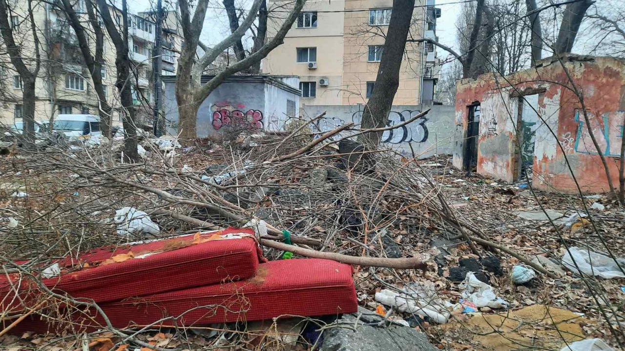 Заброшенное здание, возле которого образовалась большая свалка бытовых отходов, обнаружили на территории Приморского района Одессы прямо посреди жилого квартала с многоэтажками.