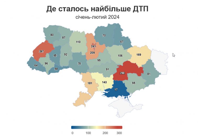 Всего в Украине произошло 2 829 дорожно-транспортных происшествий за январь-февраль этого года. Это на 6% меньше, чем за аналогичный период до начала полномасштабной войны. Число погибших в ДТП также уменьшилось на 13% по сравнению с соответствующим периодом 2021 года.