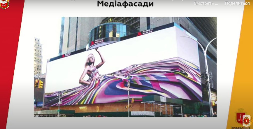 Предусмотрено внесение изменений, отмену и принятие новых схем комплексного размещения наружной рекламы. Действующие схемы, которыми предусмотрены размещение рекламных конструкций в исторической части города, стали полностью неактуальными после включения исторической части города в список всемирного наследия ЮНЕСКО , – рассказал начальник управления рекламы Одесского горсовета Игорь Слюсаренко.