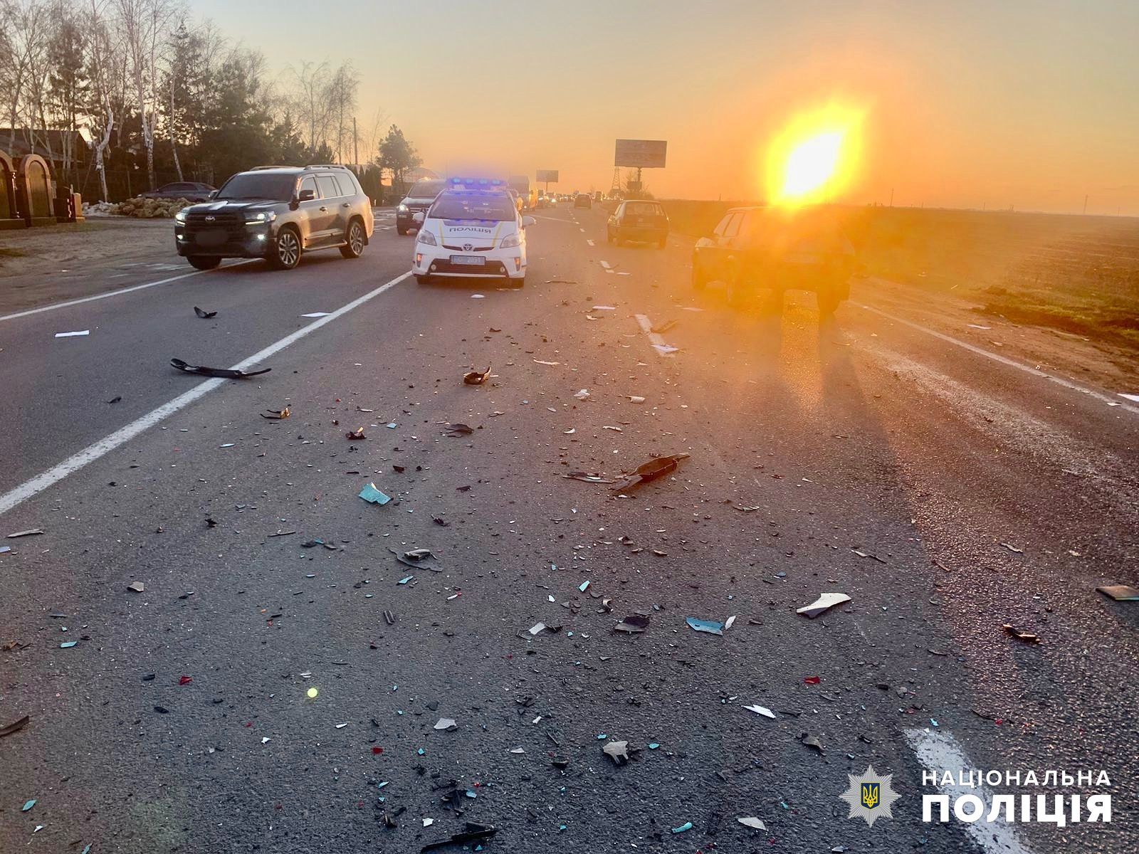 Предварительно следователи установили, что автомобиль Toyota, который двигался в крайней левой полосе в направлении Одессы, столкнулся, с автомобилем ВАЗ, когда тот, выехал со второстепенной дороги и пытался совершить разворот в сторону Киева и не пропустил Toyota.