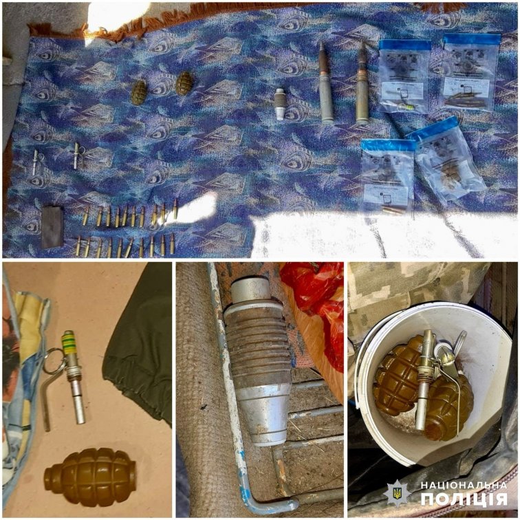 При обыске в доме мужчины полицейские нашли несколько тайников: в спальной комнате, на чердаке дома и под крышей хозяйственного помещения. Уже у них правоохранителями были найдены три корпуса ручных осколочных гранат со страстями, выстрел осколочной гранаты, два снаряда и почти тридцать патронов.