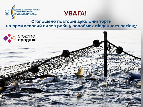 В электронной торговой системе «Prozorro.Продажи» повторно опубликовано 15 объявлений о проведение аукционов на промышленный лов водных биоресурсов в 2024 году по г. Дунай, Тилигульском лимане и низовьях г. Днестр и Днестровском лимане.