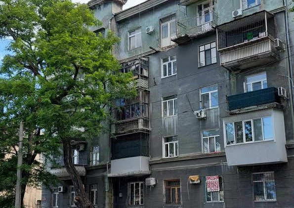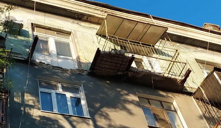 В центре Одессы по улице Старопортофранковской тротуар засыпало бетонными обломками от балкона на 5 этаже. Их было так много, что пройти по тротуару не было возможности и пешеходам пришлось выходить на дорогу, чтобы обойти опасное место.