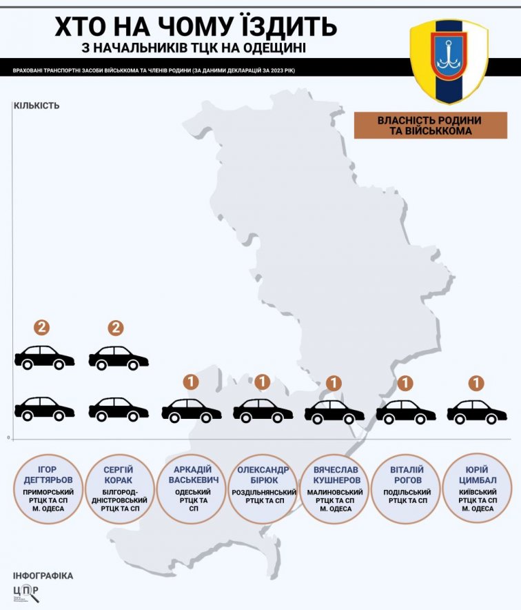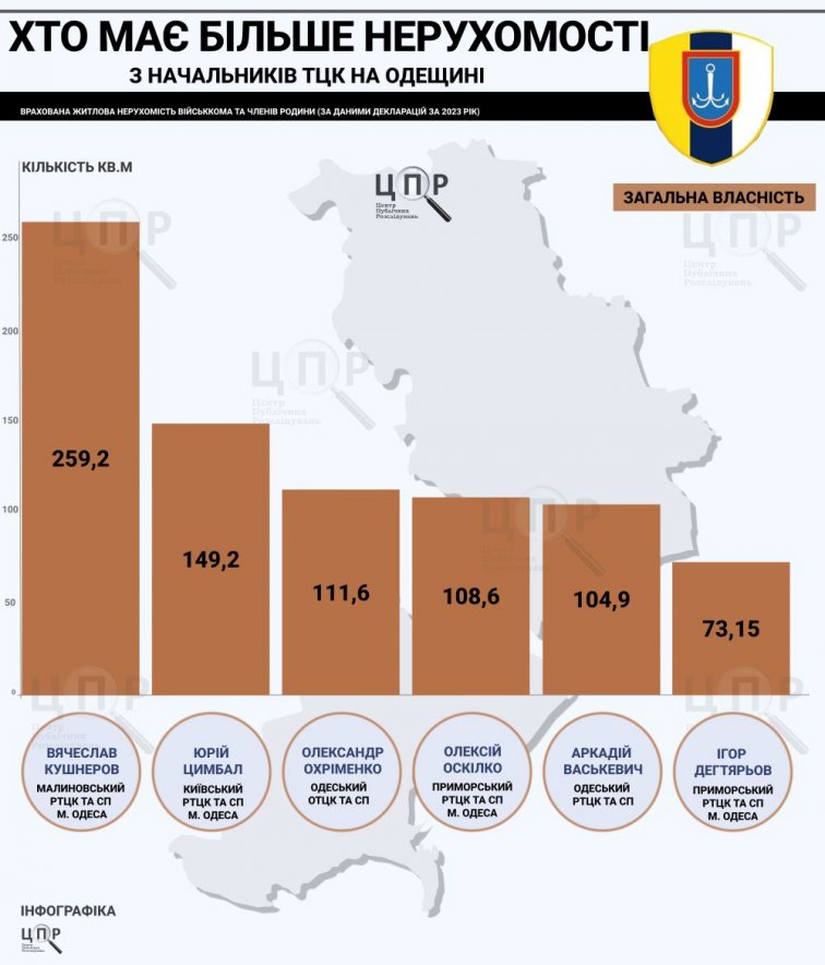 В рейтинг вошла декларация уже эксначальника Одесского областного территориального центра комплектования Александра Охрименко (уволили 27 мая 2024 года) и одиннадцати начальников районных ТЦК. Некоторые из них имеют много вопросов в НАПК и МВД.