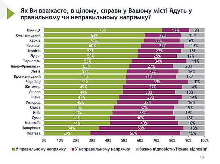 37% опрашиваемых считают, что дела в Одессе обстоят в неправильном направлении, а 44% считают, что все хорошо.