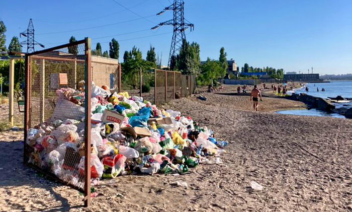 На одесском пляже "Зерновой" на Николаевской дороге отдыхающие жалуются на большую гору мусора, которую никто не вывозит. Она имеет размеры 4*4 метра и находится у таблички на заборе "Для мусора". Гора растет с каждым днем и проблему никто из ответственных лиц не видит, кроме людей на самом пляже. От мусора стоит вонь на пляже, летает много насекомых, которых привлекают разлагающиеся продукты.
