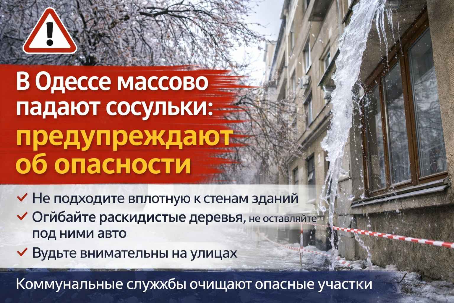 В Одессе из-за потепления массово падают сосульки: коммунальщики предупреждают об опасности